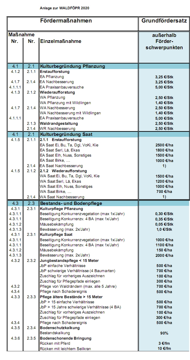 Mal eine Frage an Euch, gibt es in anderen Bundesländern keine Förderung zum Wiederaufforsten?