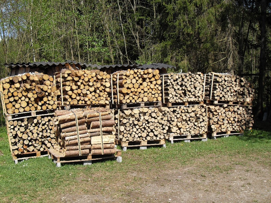 Das Holz (gespalten, 1m lang) in Reihen aufsetzen (rund 2,5m hoch und 10m lang). Zwischen den Reihen je 1m Platz. Somit könnte ich mein Holz sicher und trocken lagern.