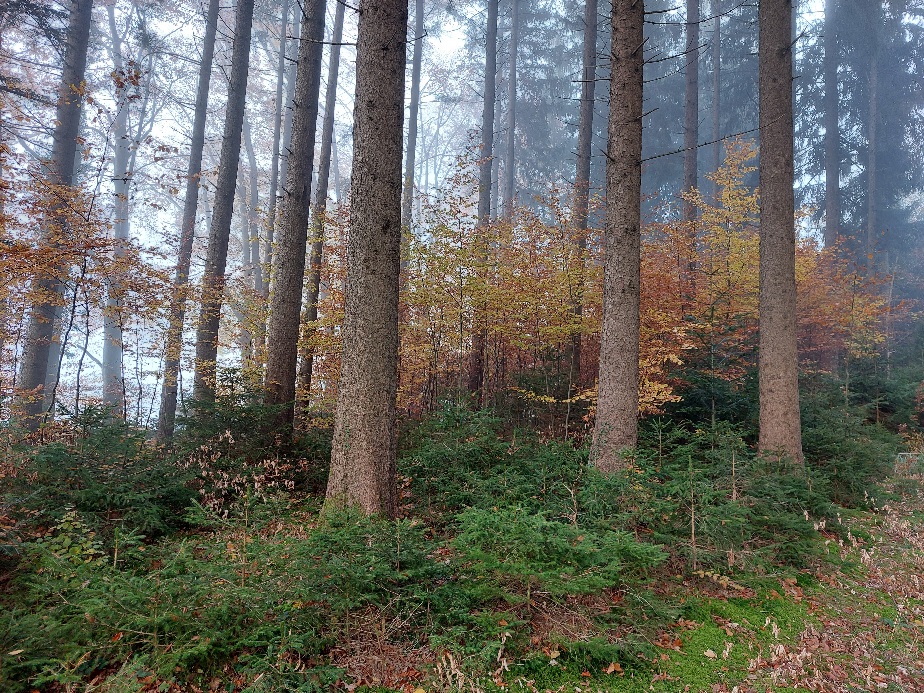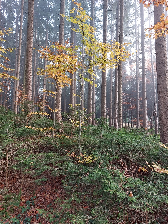 Hier mal ein kleines update. Jetzt wo die blätter weniger sind sieht man es besser wie ich zugeschnitten hab. Die buchen sind den kleinen fichten erheblich weit vorraus. Hab schon einige rausgeschnitten. Habbschon überlegt ein paar fichten umzupflanzen wo ich viel kahlfläche hab aber ich denke ich kauf lieber welche für die paar kahlflächen.