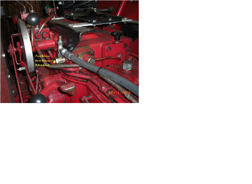 habe vor kurzem an meinen Case 740 einen neuen Stoll Frontlader angebaut. Den Rücklauf (T) habe ich auf den Anschluss ( siehe beigefügtes Bild ) gelegt. Funktioniert tadellos. Alles andere halte ich persönlich für Pfusch.