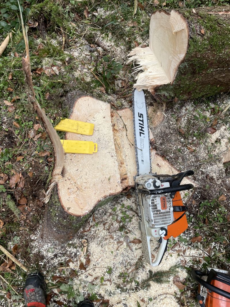 Gestern dann noch 2 stärkere Fichten gefällt und mit rücken begonnen.