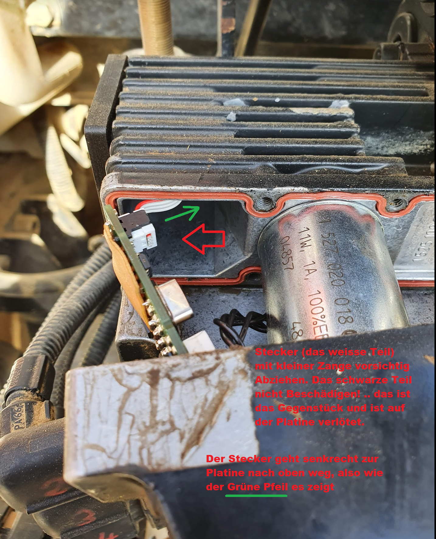 Mein Problem-Steuergerät mit 4-3 Blink-Code sitzt recht verbaut am Schlepper. Um an das Steuergerät zu kommen, muss einiges weggebaut werden. Und es muss dann selbst auch noch raus, um an den Sensor zu gelangen.