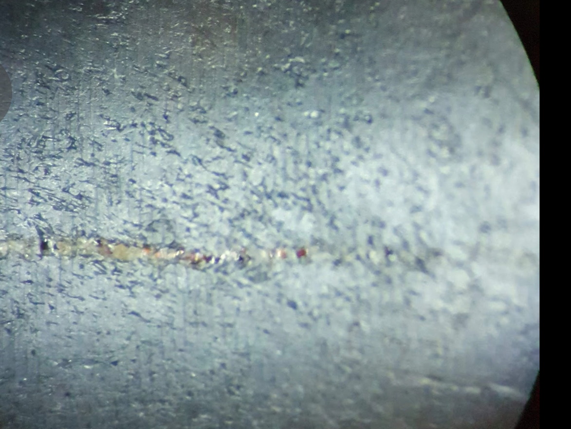 Da bei meinem Bruder an seinem Steyr Profi 125 auch das 4-3 er Blinken Auftrat haben wir uns die Sache mal etwas genauer angeschaut. Wie hier bereits mehrfach beschrieben ist in diesem Fall der WegeSensor das Problem. Manchmal hilft es das Anschlußkabel Nachzulöten, aber leider nicht immer (wie in unserem Fall). Wir haben dann alle 4 Sensoren Ausgebaut und unter dem Mikroskop sieht man dass *alle* (auch den den uns ein Händler freundlicherweise noch funktionierend zur Verfügung gestellt hat) feine Risse in dem "Rohr" haben das die Spulen beinhaltet Oft sieht man da sogar (angehängtes Bild) schon die Wicklung durch. Das geht natürlich nicht lange gut, irgendwann wird eine der Wicklungen beschädigt und dann ist Schluß mit Lustig... und die absurde Menge Euros die man dann auf den Tisch packen soll um das gesamte Ventil zu Tauschen kennen die die diesen Thread Lesen vermutlich sehr gut.