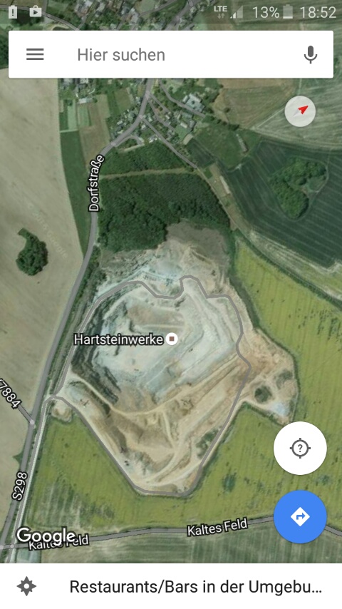 Die Bandanlage wurde gleich nach der Wende gebaut, wo dann der alte Bruch aufgegeben wurde. Ähnlich groß und auch 120m tief, nur das der in 25 Jahren zugeschüttet wurde. Man sagt, das die damit mehr Geld verdient haben wie mit Gesteinabbau.