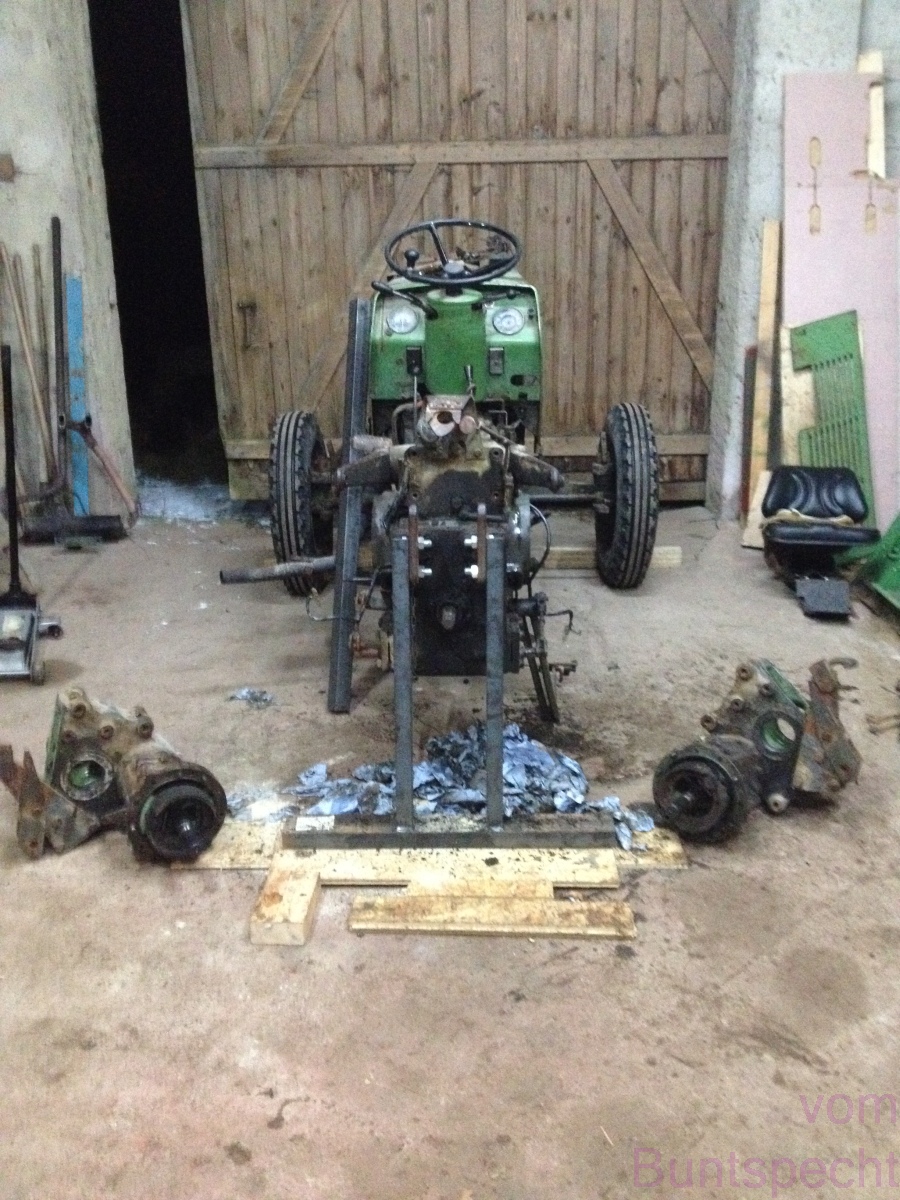 Deshalb ging es, nach aufbocken, abstützen und Reifen abbauen, erst mal mit der Entfernung des Daches losSchmuttertalerbua hat geschrieben:Ich glaub ich weiß in welcher Werkstatt Du warst