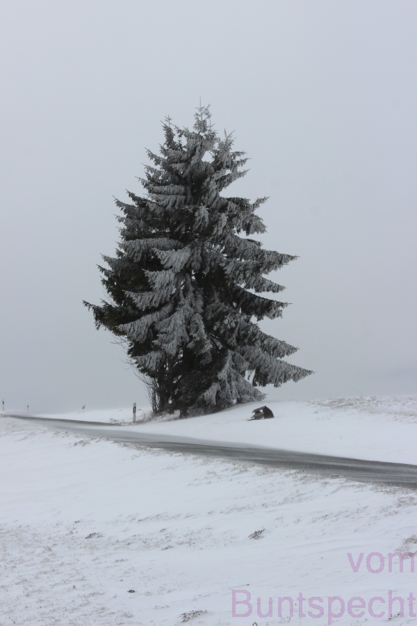 Schnee, Wind und Baum - die Bank sieht man kaum