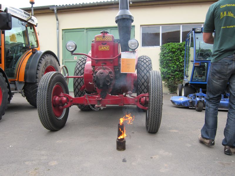 Der Lanz ist in der Tat wohl auch noch nie im Gartenbauamt gelaufen, gehört als Schaustück zu einer GaLaBauFirma. Er sollte den Kontrast bzw. die Fortentwicklung der Technik darstellen.