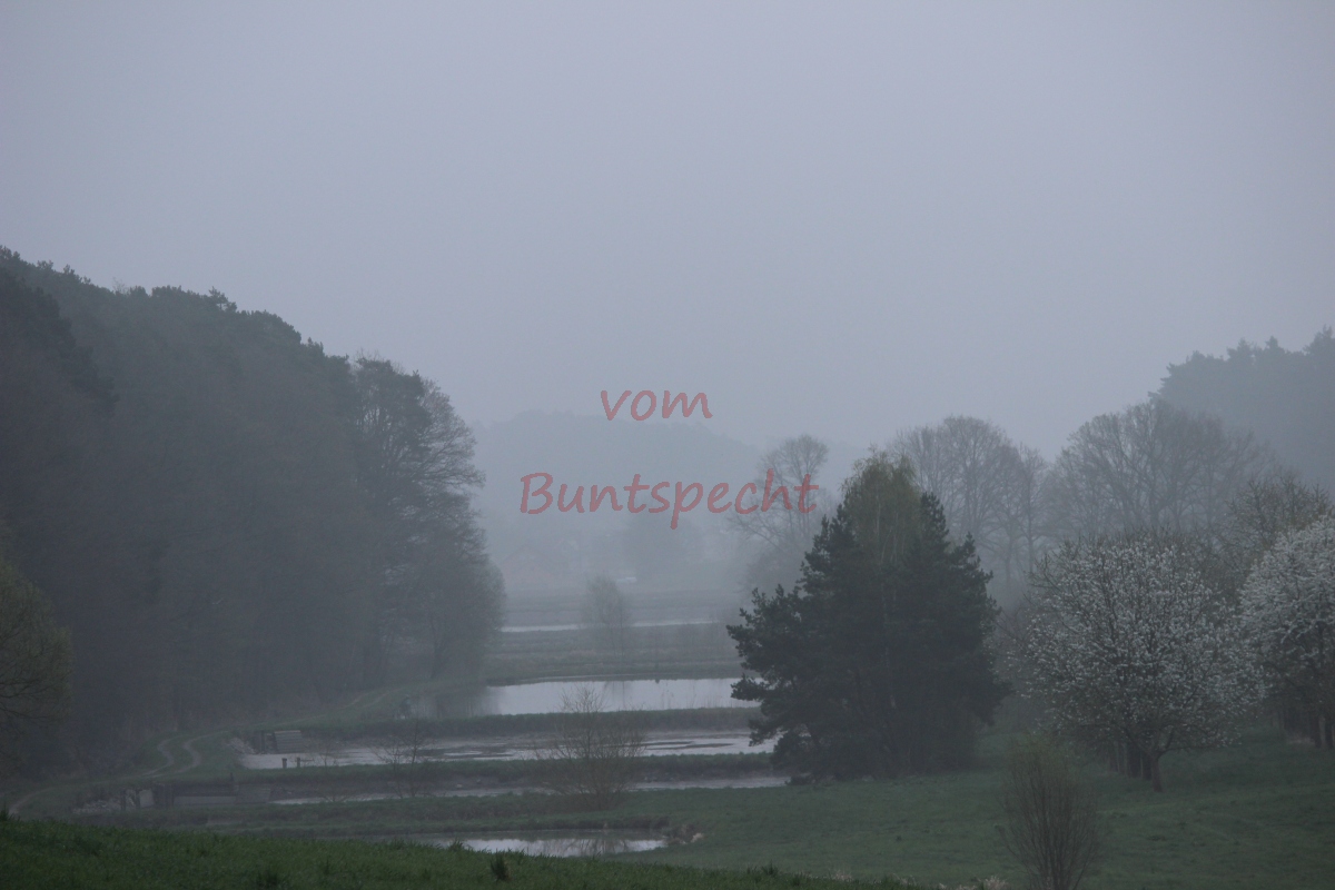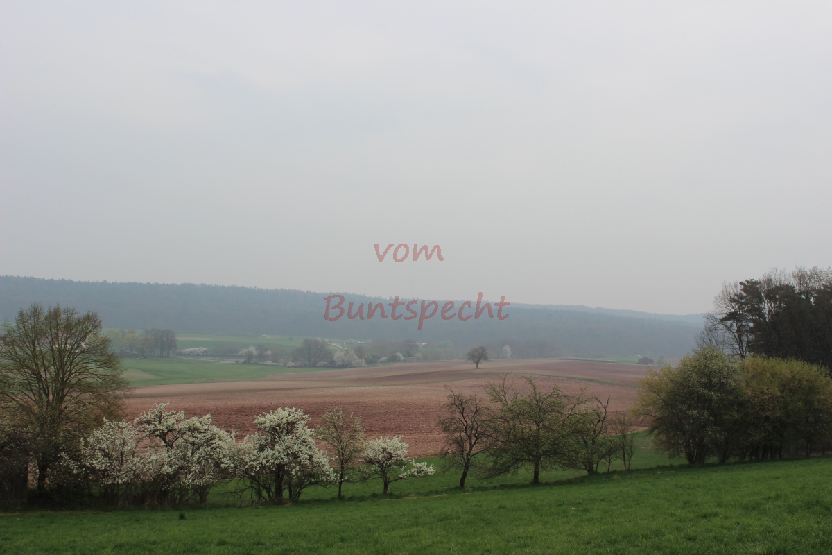 der Blick ins "Tal". Übrigens Erwin, an der unteren Böschung rechts kann man hinter dem noch nicht blühenden Apfelbaum ein paar dürre Kronenäste erkennen. Das ist der Baum (Zwetsche), der eigentlich längst fallen sollte