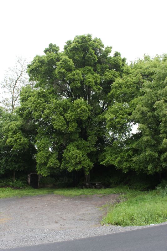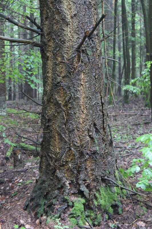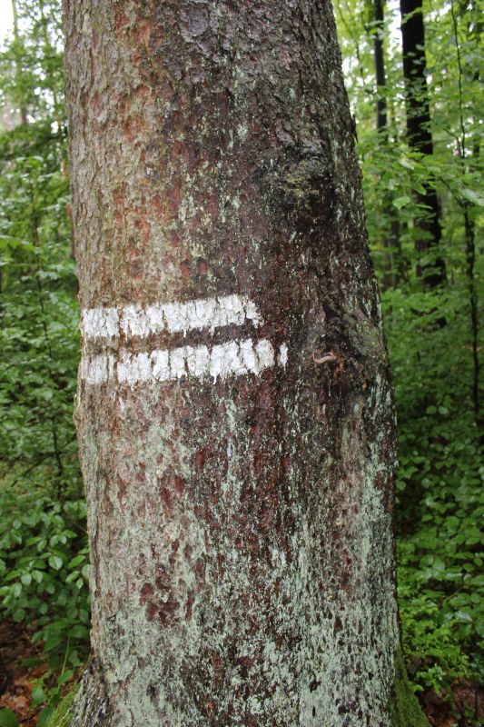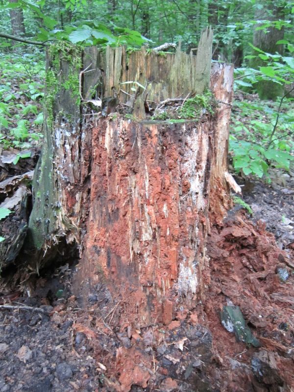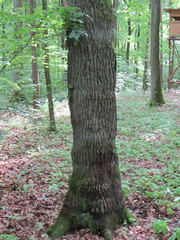 Schnittbild einer Kiefer, die sich in eine Buche "hineingewachsen" und angelehnt hat. Seilwindenunterstützt mit Halteband - bin Stolz auf mich