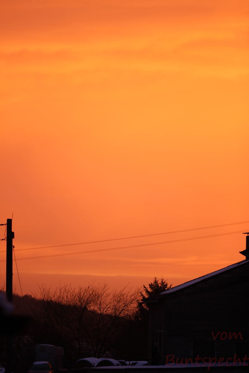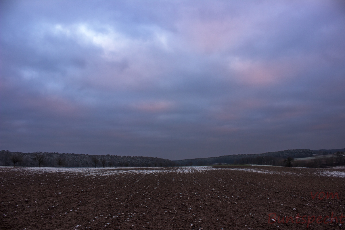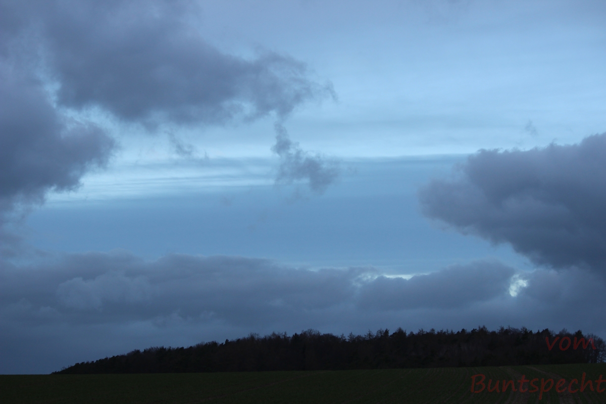 und dann, als ich wieder aus dem Wald kam, war zwar keine Sonne zu sehen, aber das Abendrot stach doch durch die Wolken
