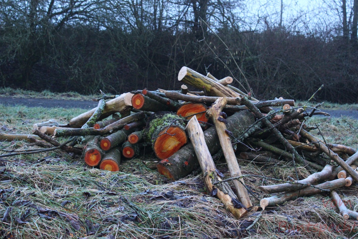 im Wald war das Holz, ein Teil lag schon abgelängt am Weg, noch gefroren - glücklicherweise auch der Schnee