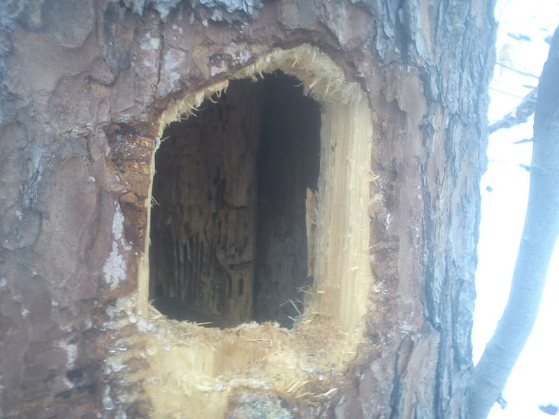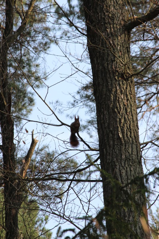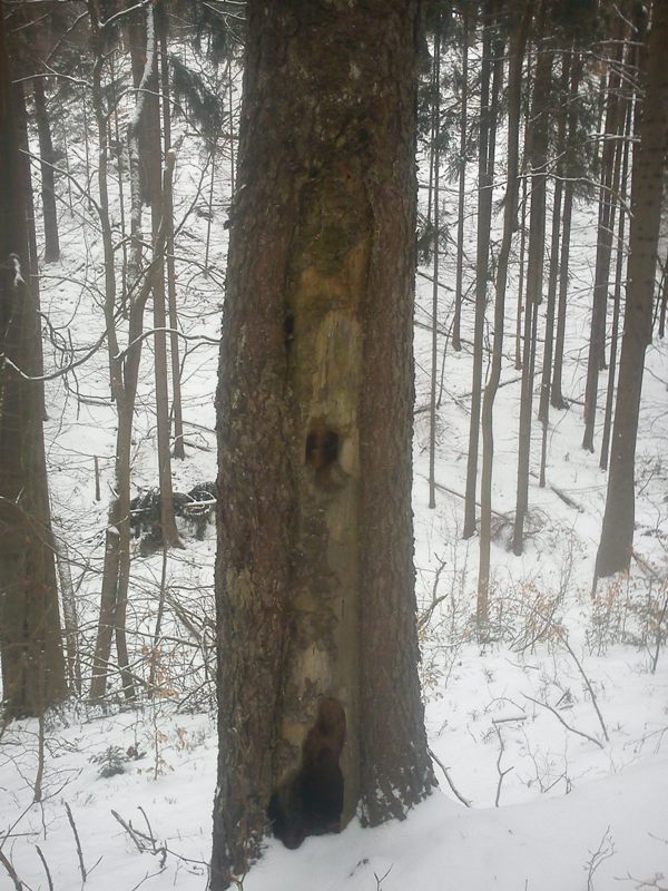 Dann flüchtete er doch noch zuerst den Stamm hinauf,