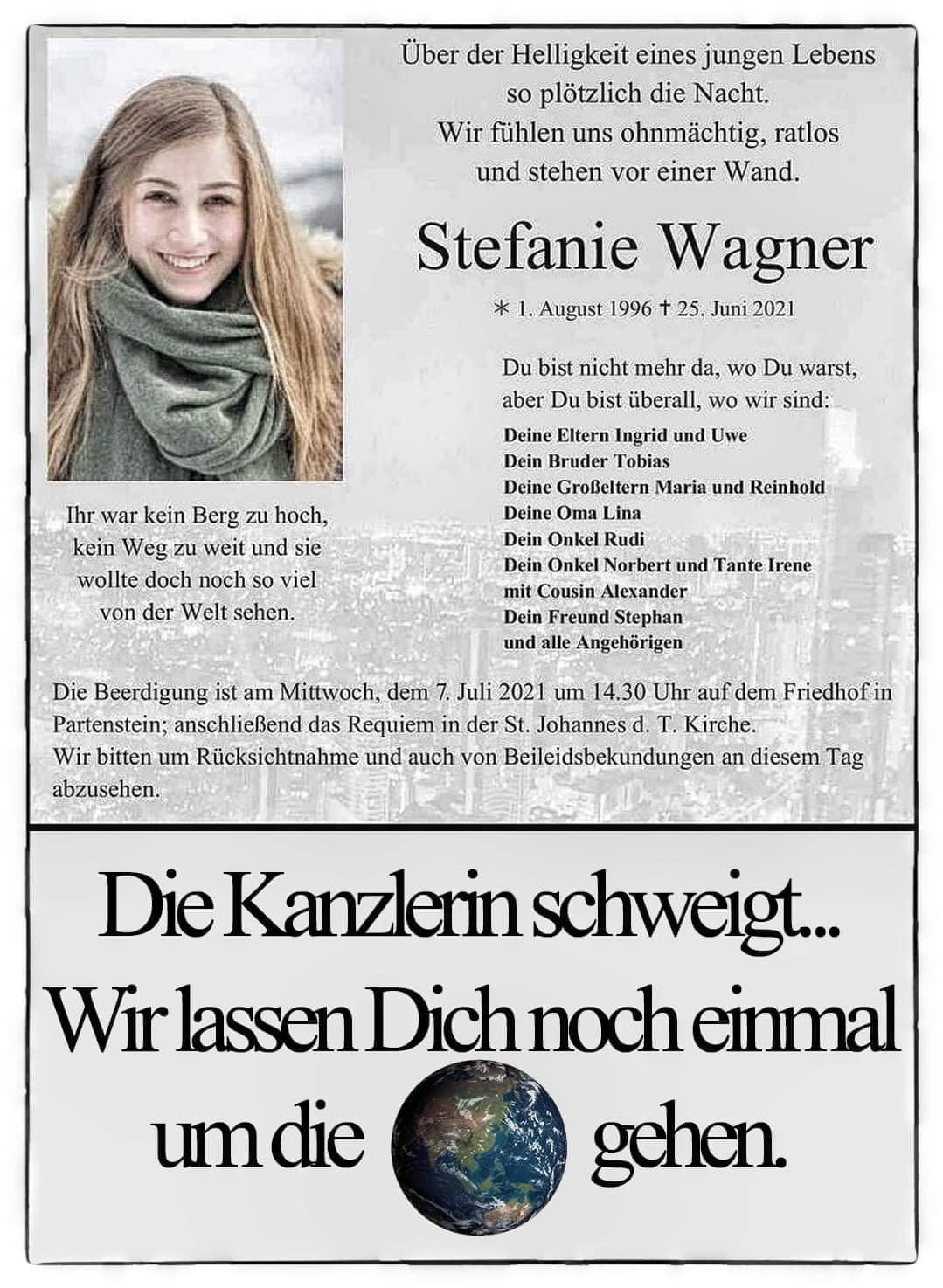 Ein Schwerverletzter, drei Tote, darunter Stefanie. Aber bis heute kein Wort von der Bundeskanzlerin.