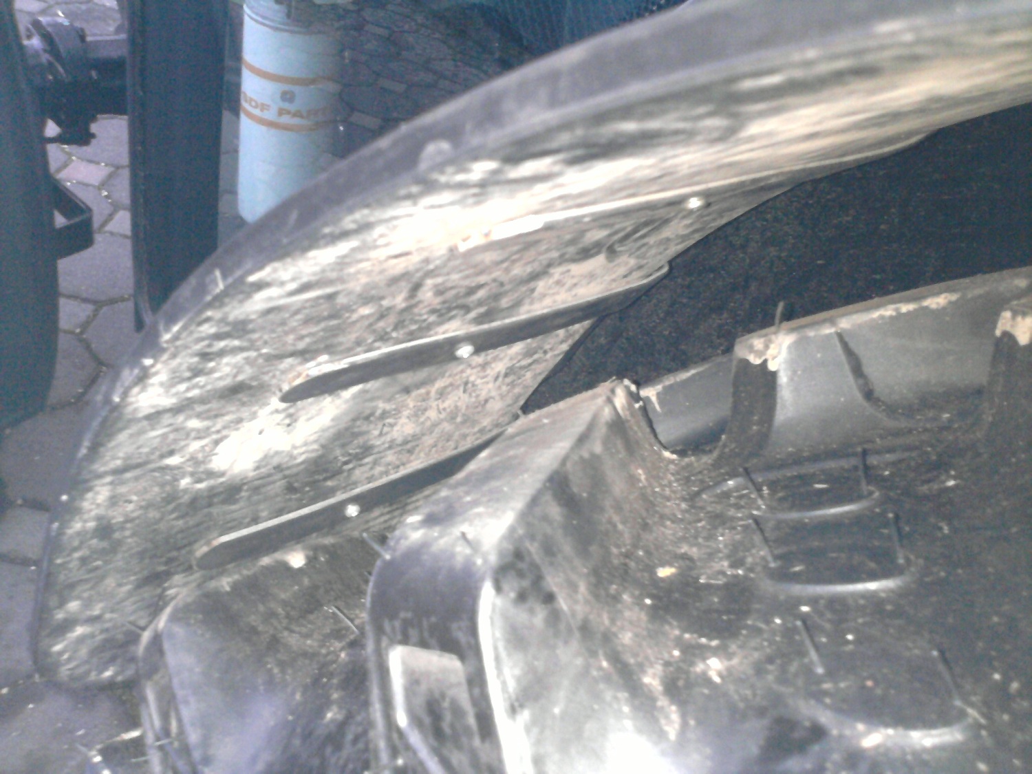 da der Frontlader bis heute immer noch nicht geliefert wurde, (soll wohl am Montag kommen) habe ich mir eine Verbreiterung für die Kotflügel gebastelt.