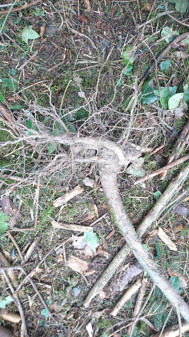 Auch wenn ich es mir nicht erklären konnte, hatte ich mir selber die Schuld gegeben. Da wird beim Einpflanzen wohl nicht immer besonders sauber gearbeitet worden sein. Hier auch mal noch Bilder von den Wurzeln zweier umgefallenen Douglasien:
