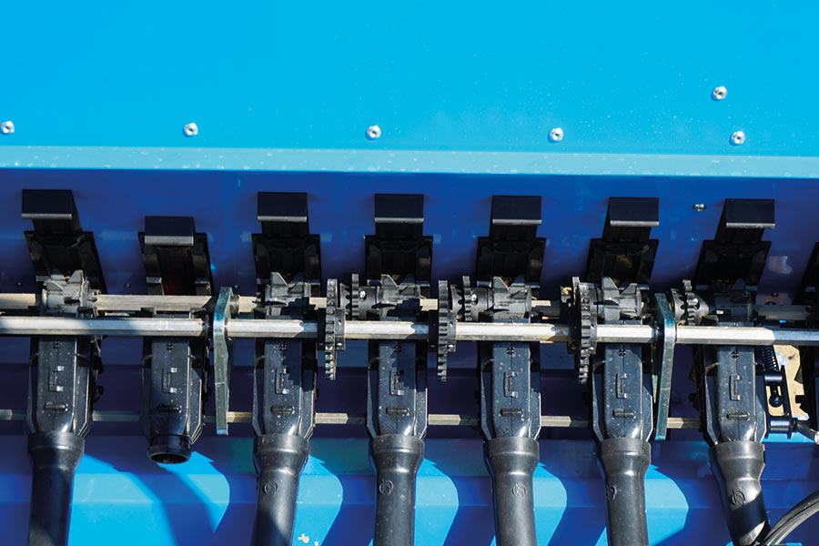 Bei der Pneumatischen Variante hat Kuhn auch über einen entsprechenden Kopf die Möglichkeit alle erdenklichen Fahrgassen Rhythmen zu schalten, auch wenn es nicht auf die Sämaschinenbreite passt. Kostet laut Konfiguratior aber ordentlich Geld…