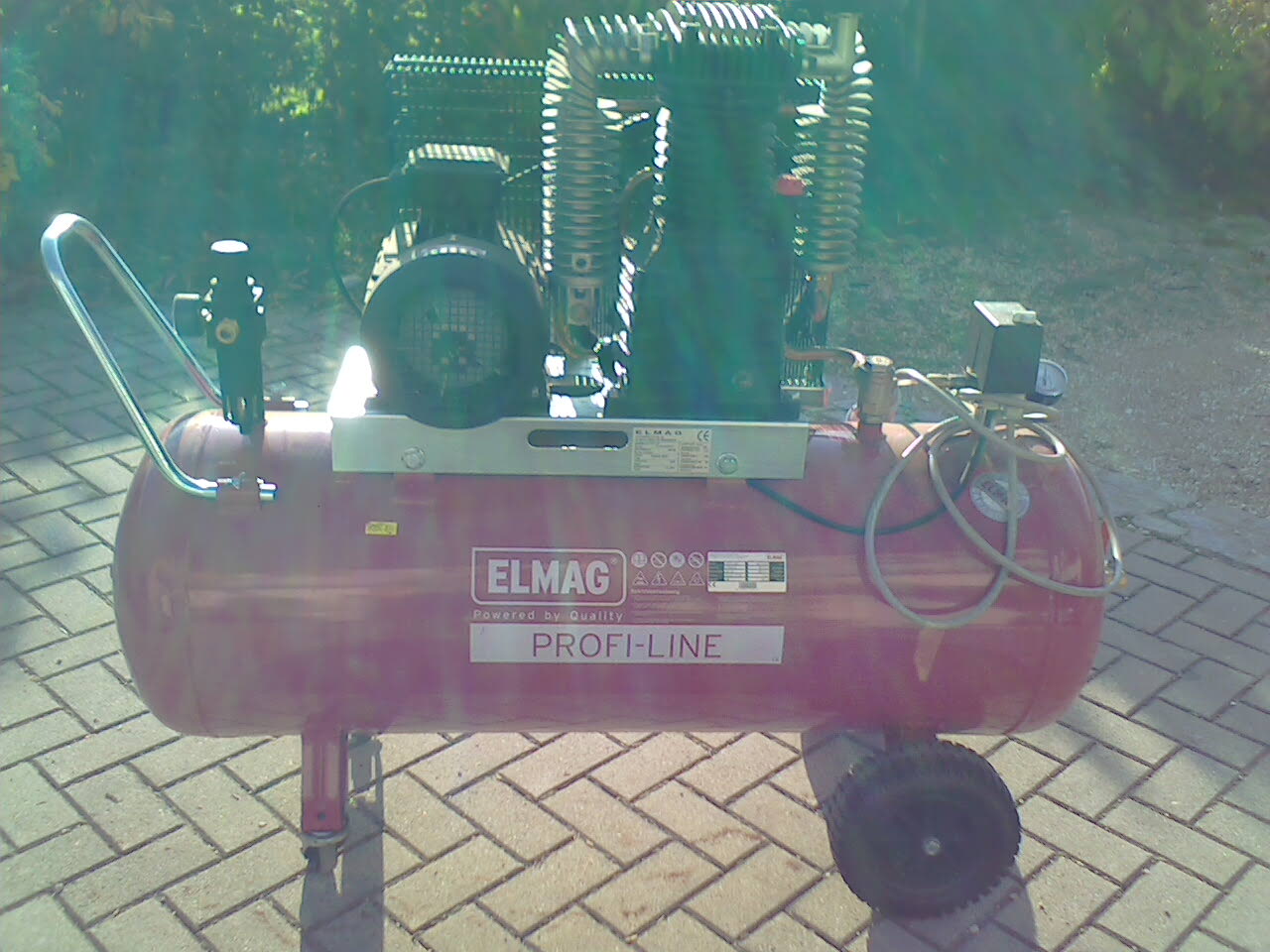 unser alter kompressor mit 50 liter tank ist nun 40 jahre alt und ein eigenbau er funktioniert sehr gut und hat einen alten lkw kompressor drauf.