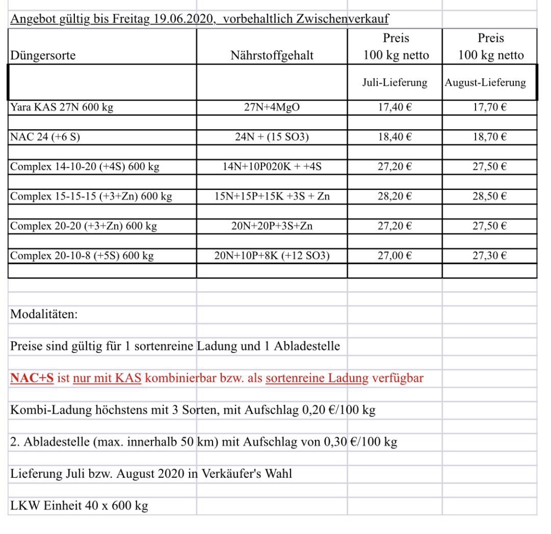 Leider doch! Das sind natürlich netto Preise und mein Freund ich haben zu diesen Preisen 480t Dünger gekauft… wir organisieren eine Einkaufsgemeinschaft mit mehreren Landwirten.