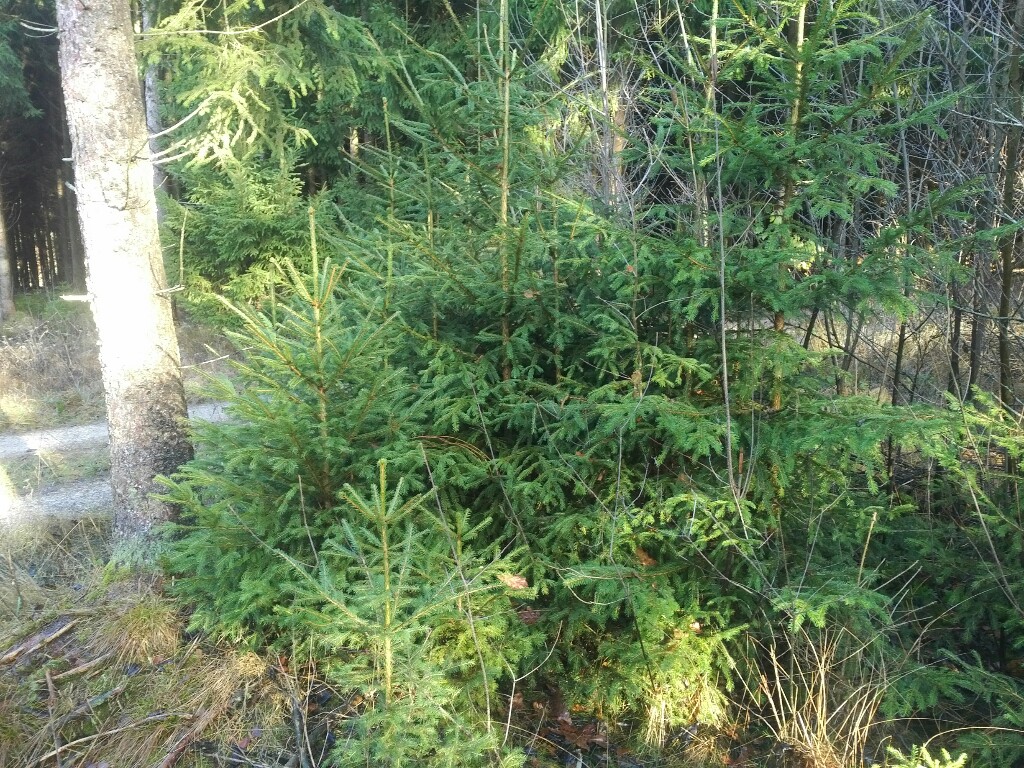 wir waren heute in unserem geerbten Wald und wollten nach dem Rechten schauen. Dabei haben wir uns gefragt, wie wir mit den Gruppen von kleinen Fichten umgehen sollen, die durch die Naturverjüngung entstehen. Sollen wir hier einfach jeden zweiten Baum entnehmen? Was sind denn die richtigen Abstände für Fichten mit 0,5 m, 1 m, 1,5 m usw?