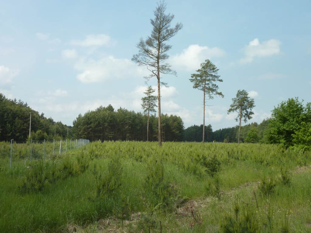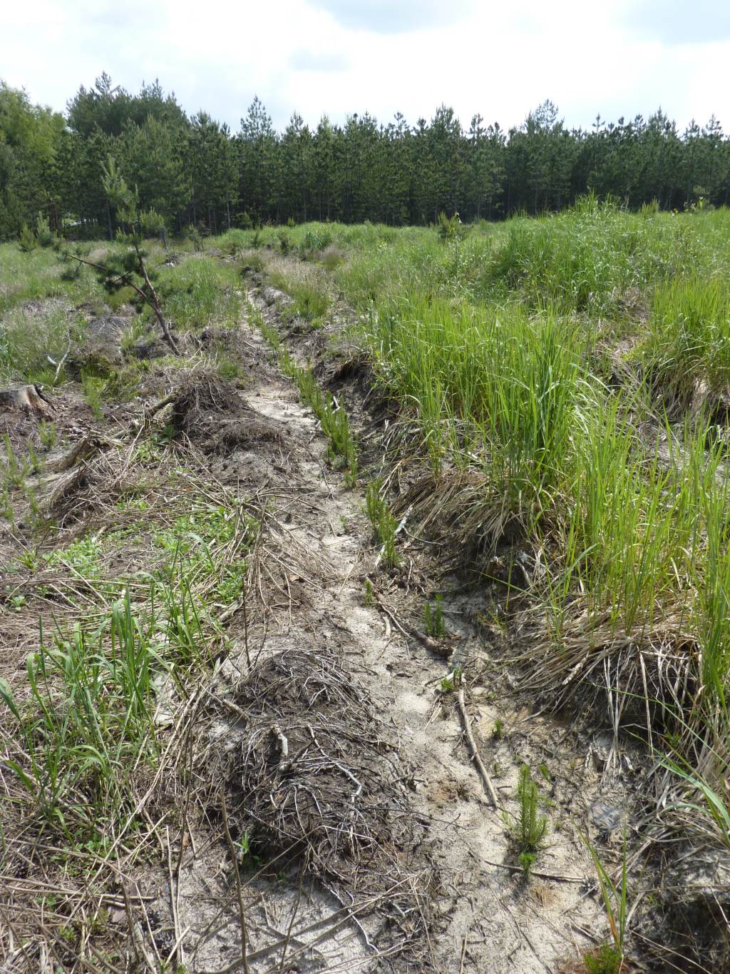 Klingt vernünftig und wird so bei Kiefernpflanzung auch gemacht. Es gibt dafür auch speziell geformte Forststreifenpflüge, die nur die obere Grasnarbe umlegen, irgendwo habe ich Bilder von Kiefernpflanzung mit sowas, muss ich nachher mal suchen. Gerade im Osten sollten diese Pflüge evtl. noch bei einer Oberförsterei oder Baumschule vorhanden sein und evtl. ausleihbar sein.