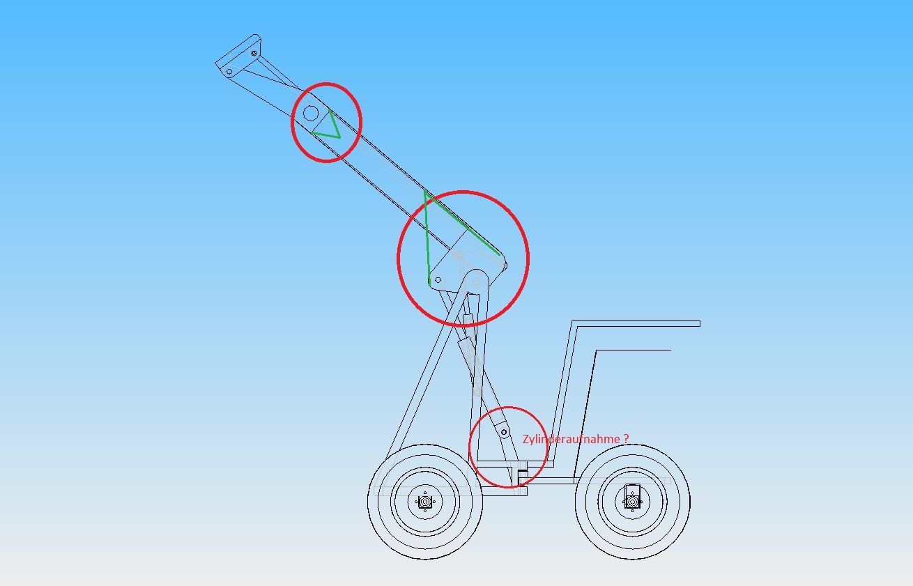 Ich neige auch zu einem nicht aktuierten Teleskop. Die Parallelogrammführung könnte aber interessant sein, man könnte den Schwenkzylinder in den Wagen legen. Das ist für das Gewicht optimal. Ein super Tipp, das werde ich mal entwerfen
