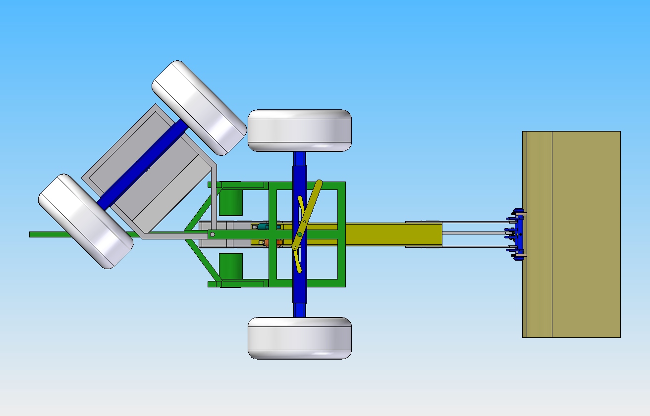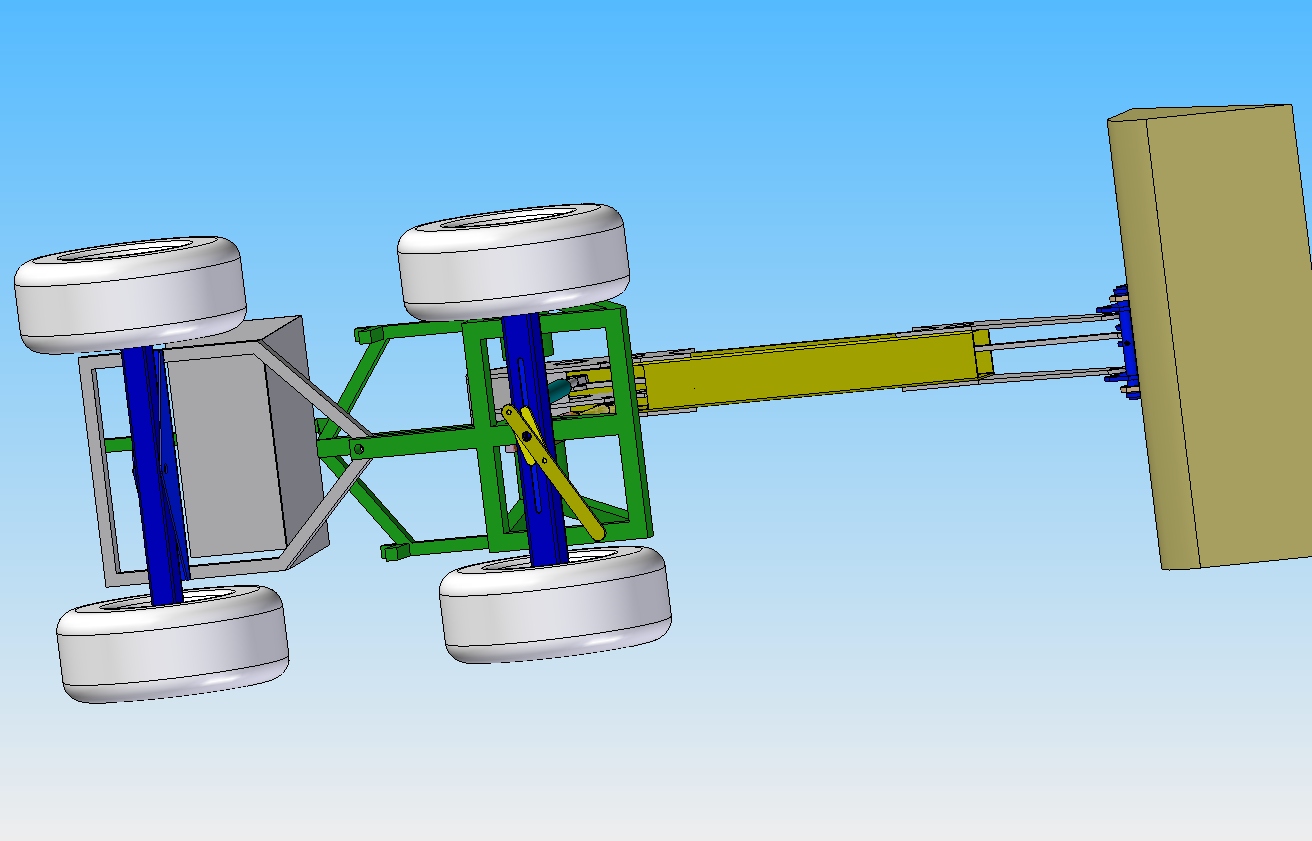 Berg ab und eingelenkt habe ich noch nicht gerechnet. Berg ab könnte kritischer werden, da im Hinterwagen ja nur der kleine Motor und die Pumpen sitzen, der Fahrer mit seiner Masse über dem Hinterwagen sitzt aber nicht mit schwenkt, ist das nicht ganz so wild. Aber er kippt natürlich leichter zur Seite. Noch sind die Berechnungen aber mehr so Abschätzungen weil die Gewichtsverteilung noch nicht klar ist.