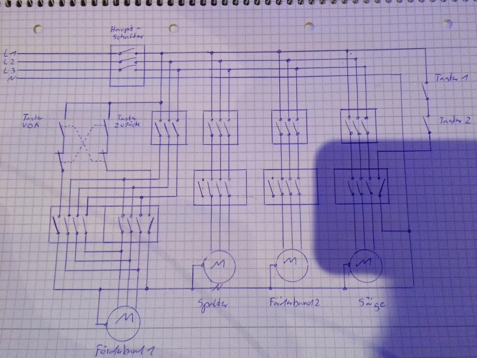 die dann deine Schützkontakte bei betätigen der taster zum klacken/anziehen bringen,das dein Strom/Spannung auch am Motor ankommt und zum laufen bringen sollte !! , somit dürfte kein Kurzschluss/Sicherung fliegen passieren ,