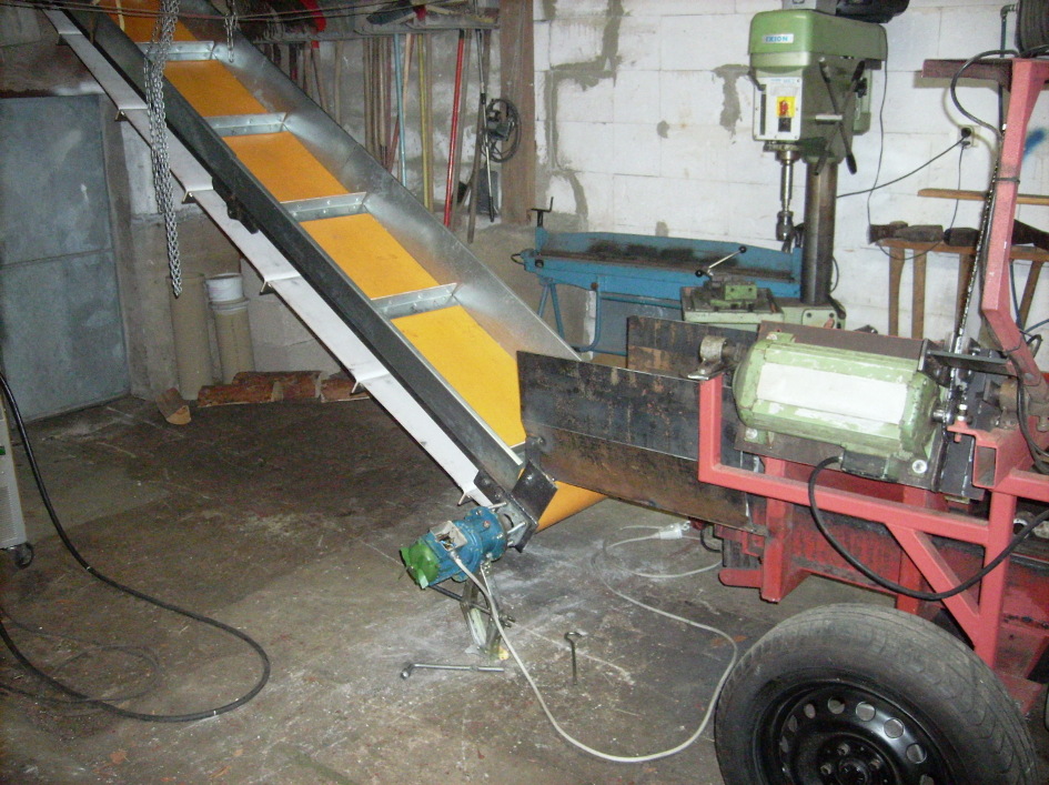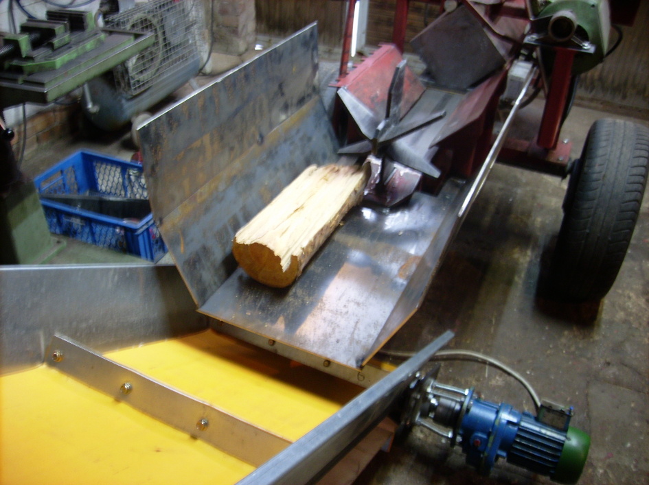 Nacharbeiten mal wieder ... gestern das Förderband getestet (nur Anmachholz), da klemmte das Band andauernd....