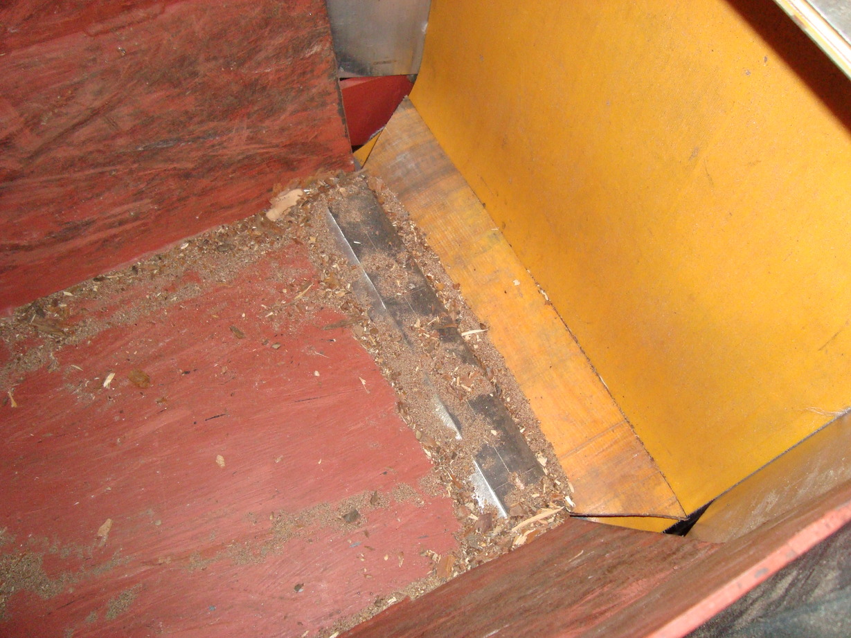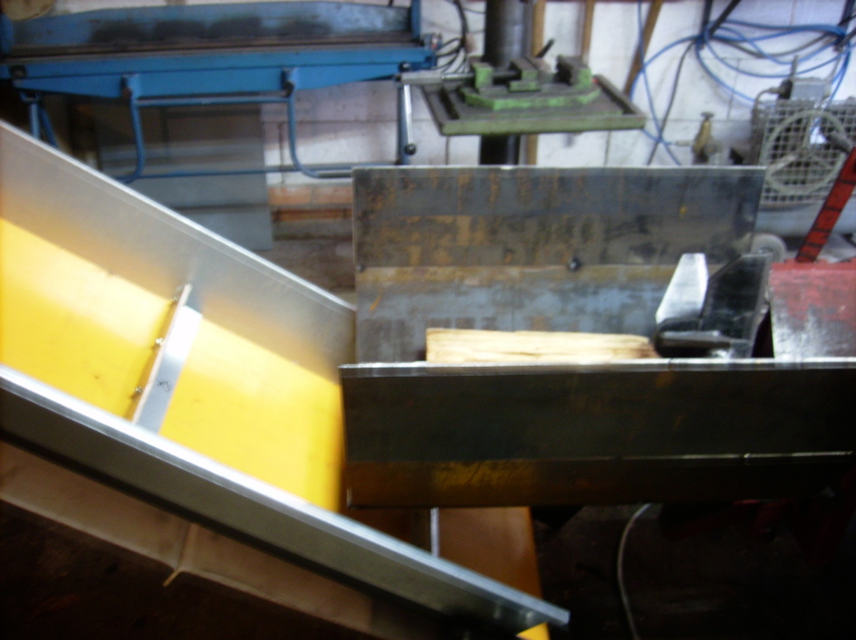 Dann hat sich ab und zu Holz selbstständig gemacht, wenn der Spaltkanal voll war viel es über das Seitenblech vom Band (schwarz makiert), muß wohl der Einlass was vergrößert werden.
