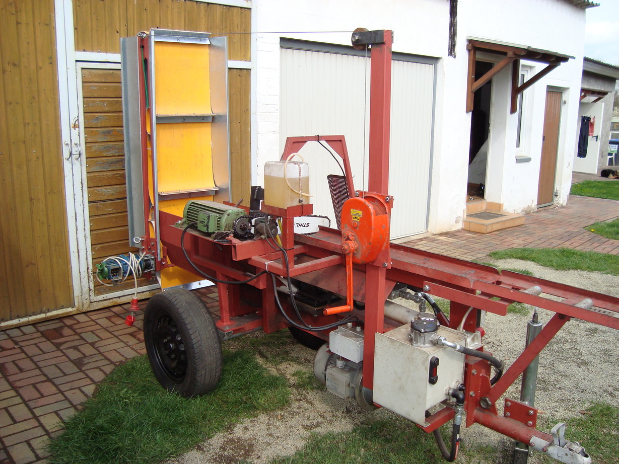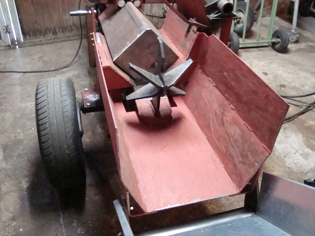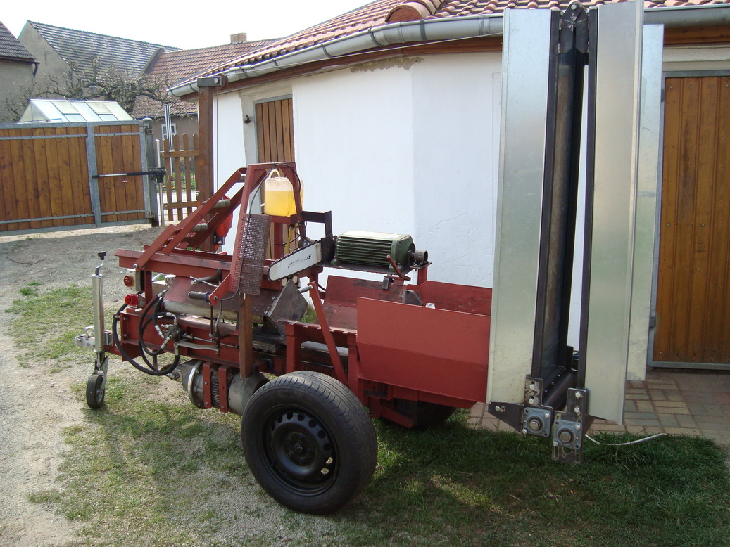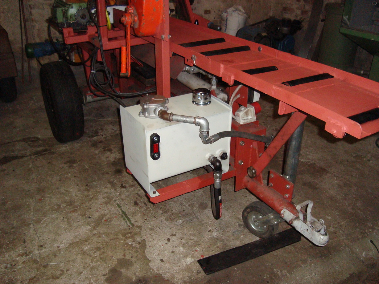 Heute mal das Förderband ran gebaut, wenn es ~ 45 Grad hat kippt der ganze Sägespalter um.... die Achse ist eigentlich schon relativ weit hinten (langt aber nicht).