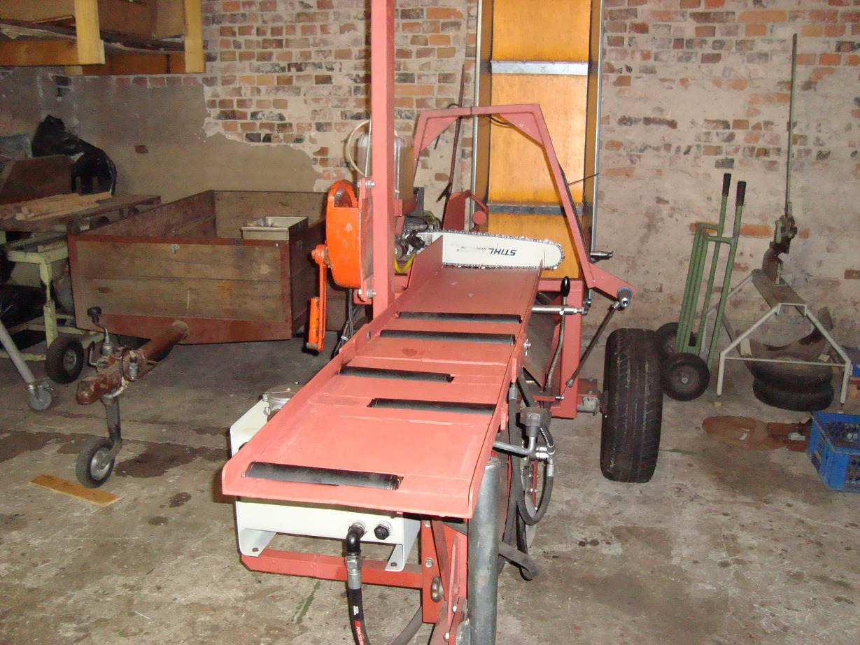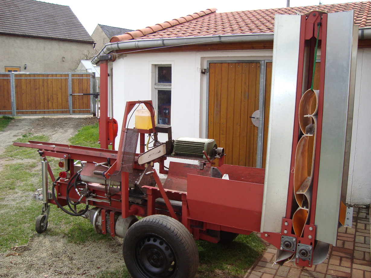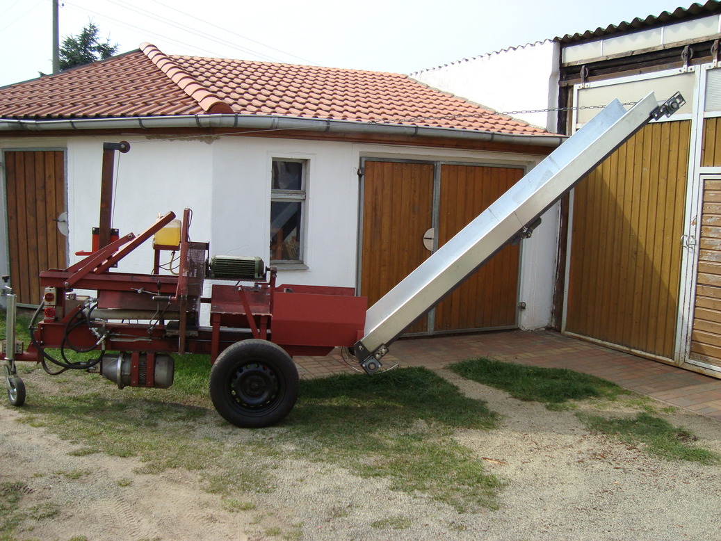 Heute mal das Förderband ran gebaut, wenn es ~ 45 Grad hat kippt der ganze Sägespalter um.... die Achse ist eigentlich schon relativ weit hinten (langt aber nicht).