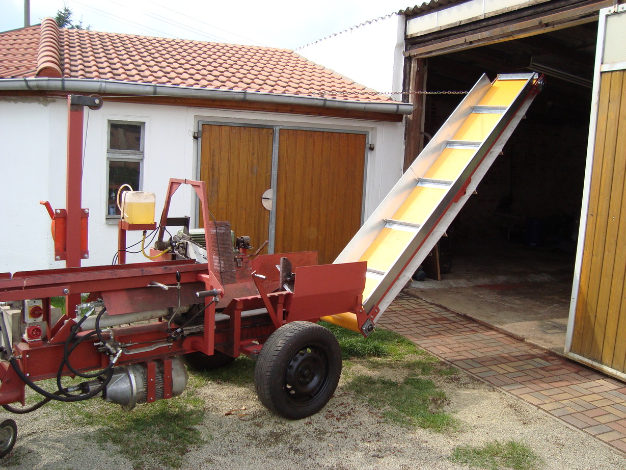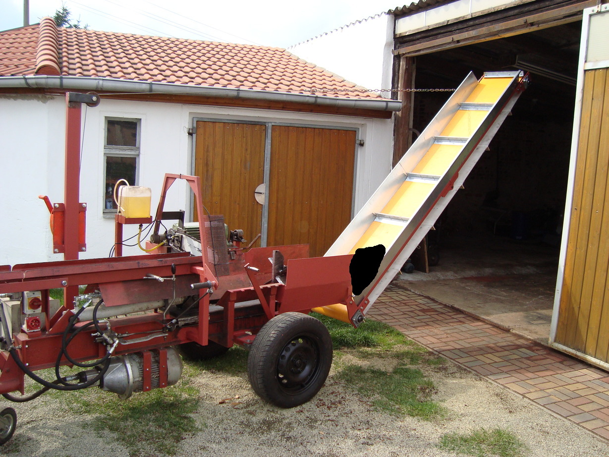 Und wie viel Platz sollte zwischen Ende Spaltkreuz, bis zum Förderband sein (dachte eine Scheinholzlänge, damit nicht in das Band hinein gedrückt wird)?