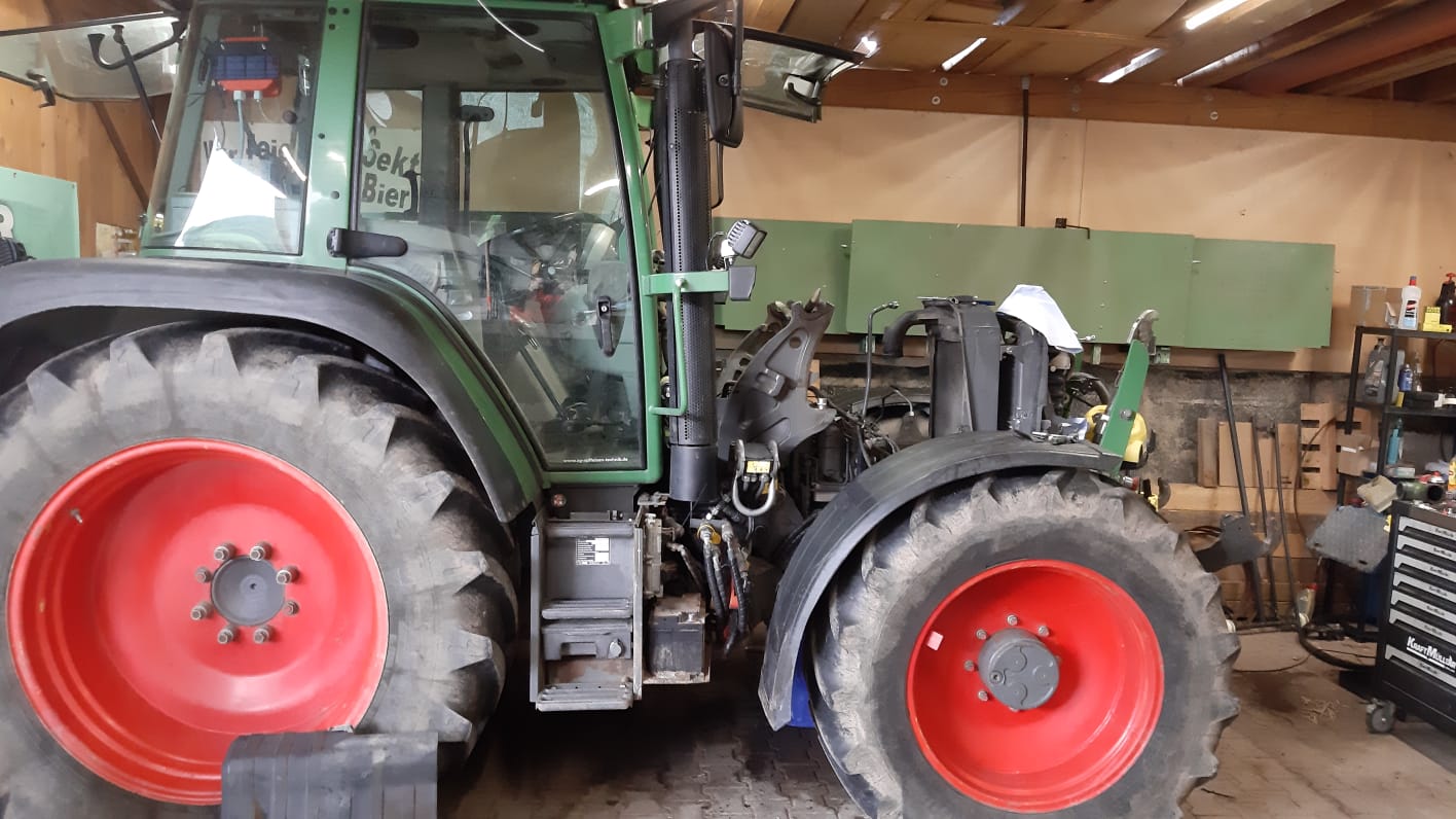 Es musste die Möglichkeit bestehen die Kiste in der Fronthydraulik, mit dem Frontlader und an der Seilewinde zu transportieren. Nachdem ich selbst nicht schweißen kann, hatte ich die Idee das Gestell einer Feldspritze zu nutzen. Hier die Basis für die Kiste: