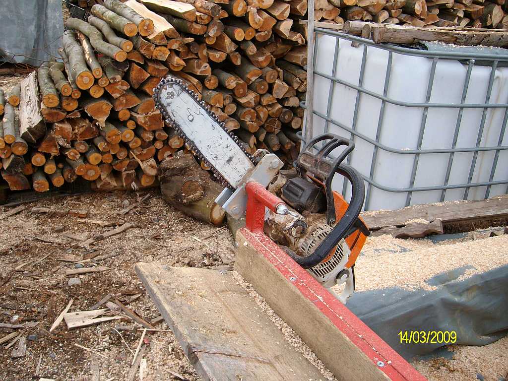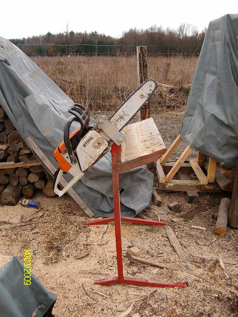 hab heute mal ein paar Bilder von meinem eigenbau Wippsägebock gemacht. Die Motorsägenvariante habe ich gewählt da ich am Holzplatz keine Strom habe und zuhause nicht die ganzen Sägespäne haben will. Ich schaffe damit so ca 1,5 Rm /Std von 1m auf 25cm zu schneiden.