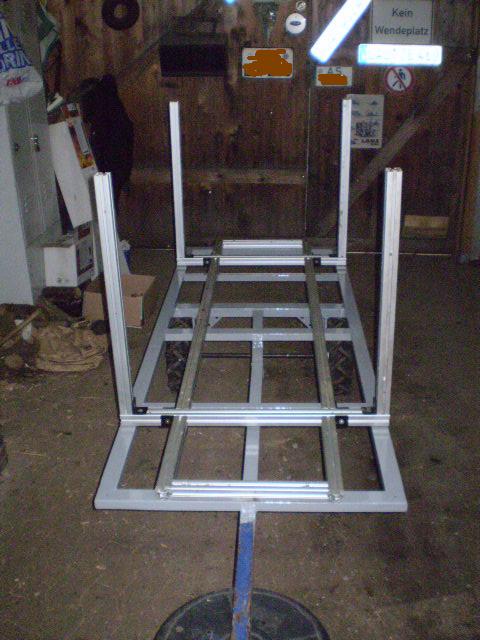 so das mit den Rungen geht ja schonmal ganz gut, 4 Schrauben lösen und von Innen nach Außen setzen. Jetzt ist nur die Frage wie ich es mit dem Handwagen mache, der soll ja auch drauf passen und zugleich noch zum Kippen sein. Werde mir morgen mal gedanken machen.