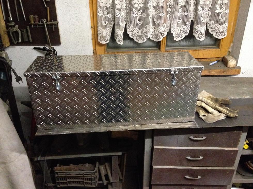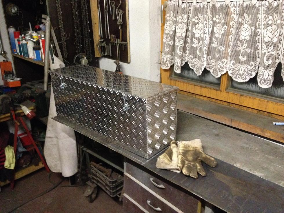 Morgen setze ich das letzte Stück Blech ein und mache die Laschen für den 3Punkt Anbau. Dann ist der Rohbau bereits fertig. Das Blech wo die Kette drin liegt war eine Abdeckung einer FL-Röhre und passt wie angegossen als "Aufbewahrungsort für die Ketten". Ist hier aber nur hingelegt.