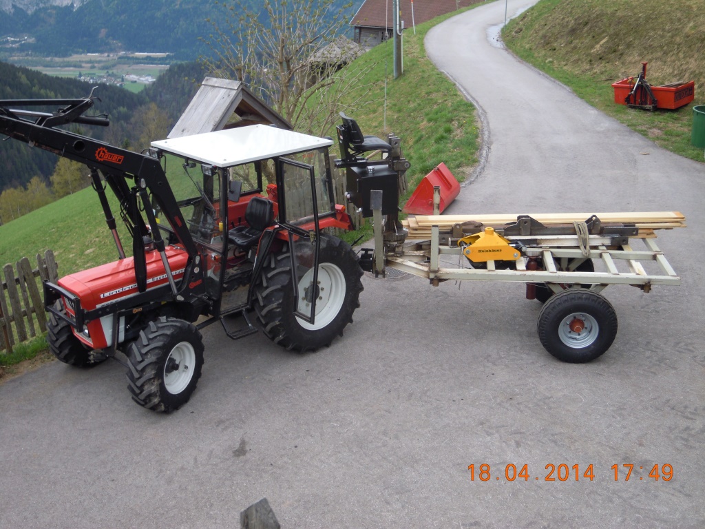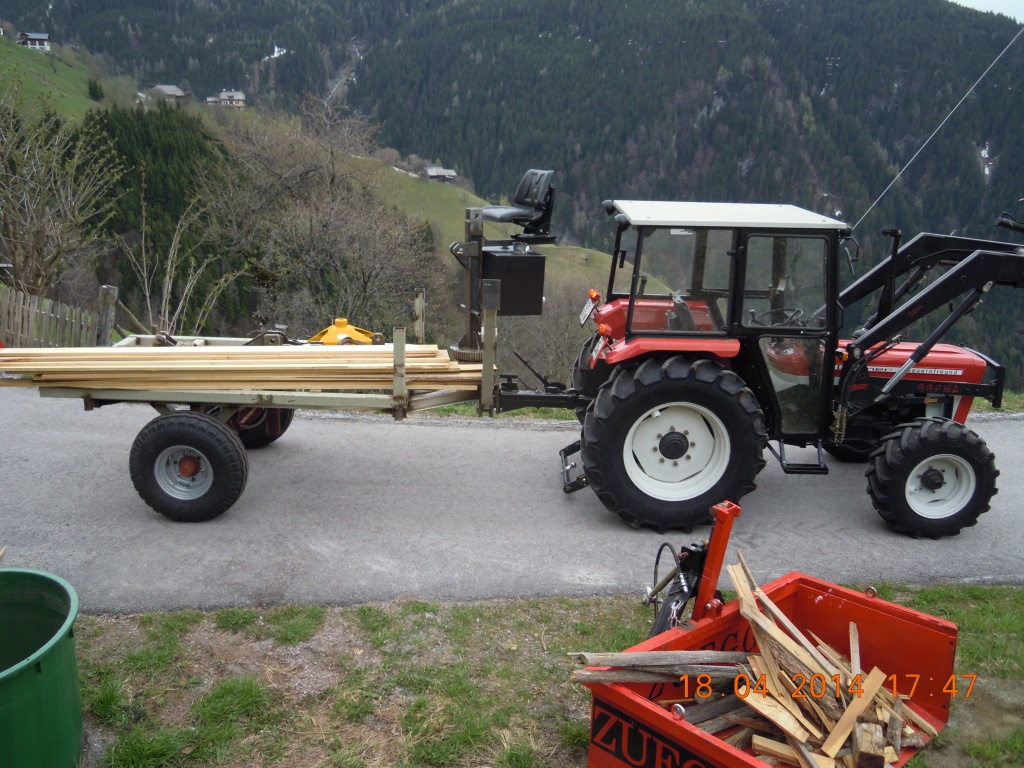 Wenn holz geladen wird, kommt statt der Brücke ein niedrigerer Aufbau mit Rungen hinauf. Dieser ist dann auch wesentlich länger. Hierfür wäre eine Tandemachse natürlich sehr vorteilhaft, aber, da in unserer Gegend das befahren von nicht befestigten Forststraßen ohne hin nicht möglich ist, kann ich das sehr gut verkraften. natürlich wäre da noch die Gewichtsverteilung auf 4 Räder statt nur auf 2.... aber die Räder wurden so dimensioniert, dass sie bei voller Beladung auch standhalten.
