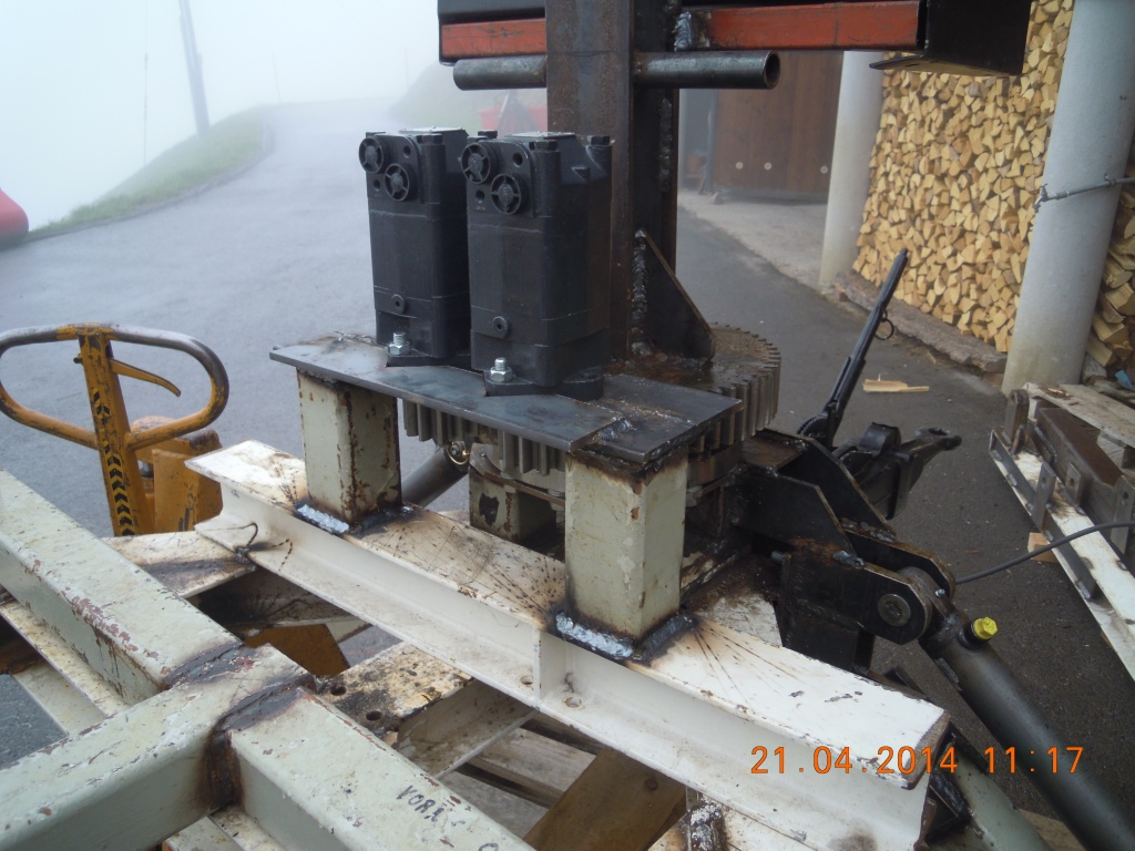 Da mich die Kettenschmierung am Sägespalter manchmal im Stich lässt, bzw. mengenmäsig nicht höher stellen läst, hab ich da mit etwas Druck nachgeholfen.