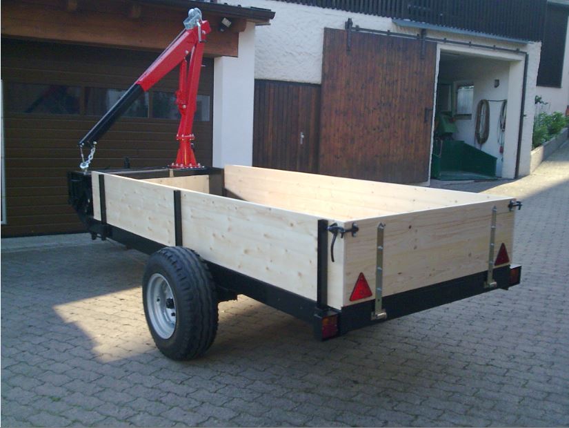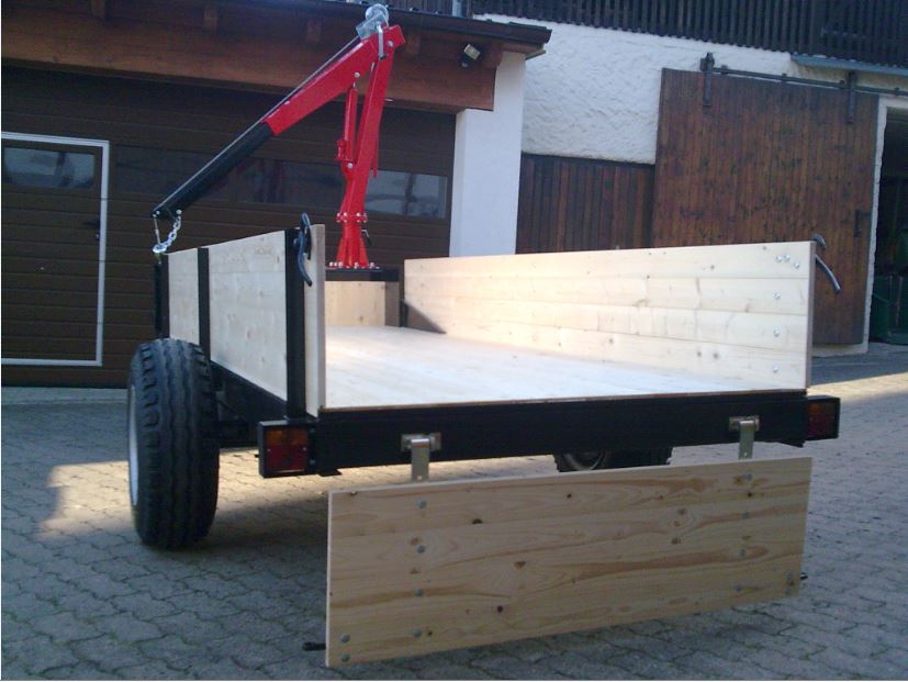 Ein 5RM Meterholzwagen mit hydraulischer Bremse. Im Sommer fahre ich darauf ein Wasserfass.