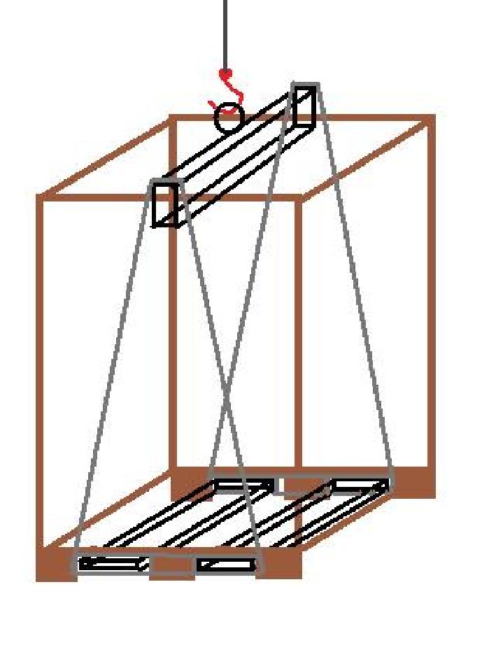 Wenn du anziehst, werden sich die beiden unteren Träger zueinander hin zusammenziehen. Dann ist der Abstand zu gering und die Pallette kann kippen.