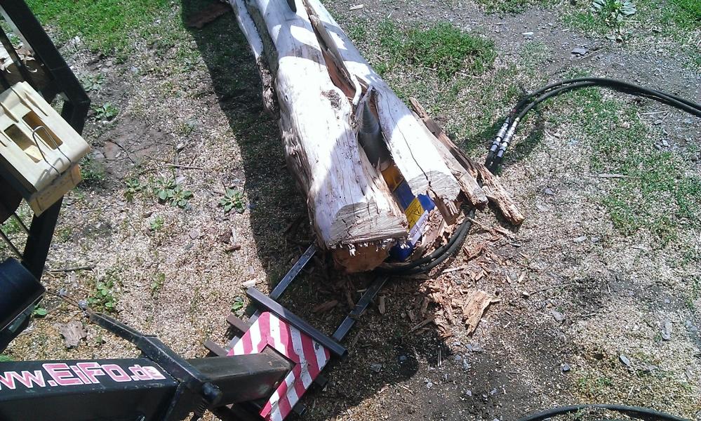 Natürlich habe ich den Spalter heute gleich mal getestet. Mit dem Kleinzeugs bei der Halle gings schon mal, jetzt brauch ich was großes