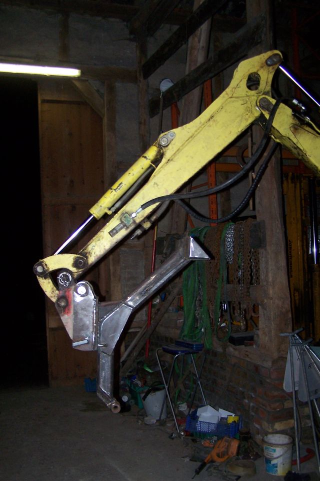 Wenn er den Werkzeugzylinder richtig ausfährt, ist die Stütze am Arm und der Greifer hängt frei.