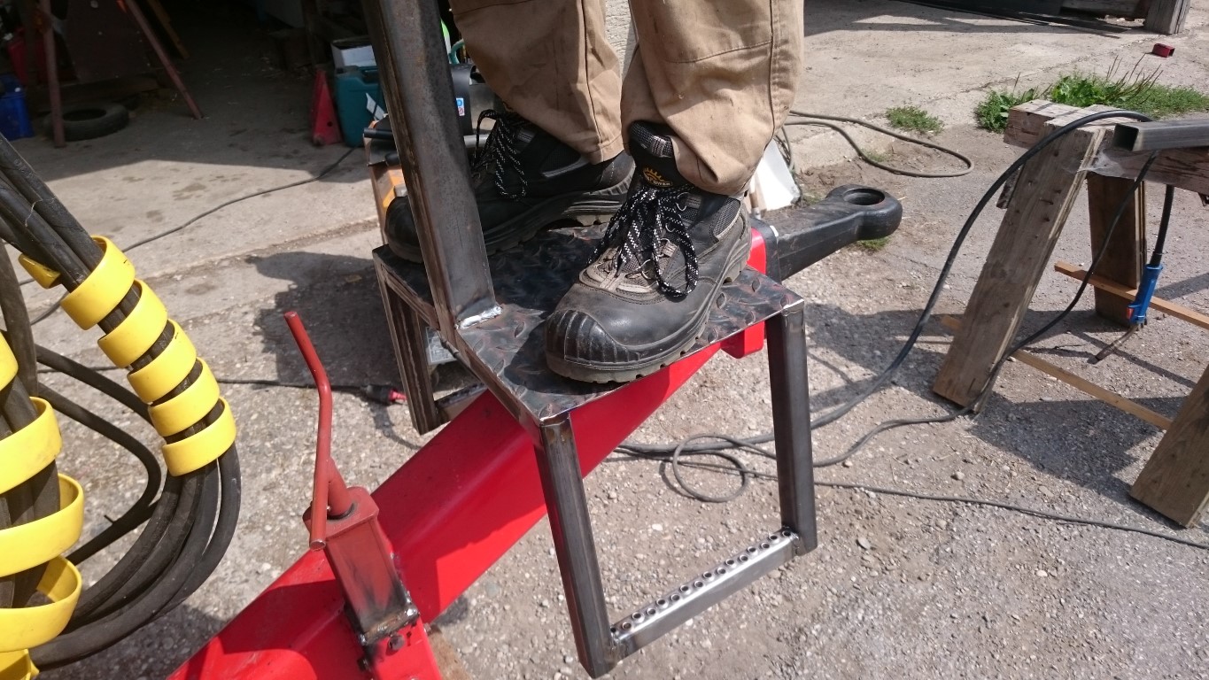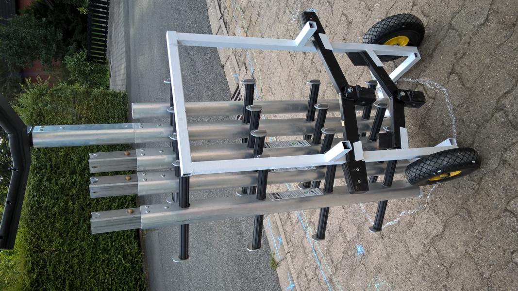 Ich hab da schon was in Planung wie man das Ding bewegt bekommt. Wenn der Belag drauf ist (0,5cm Abstand) wird an den äußeren Trägern einmal in der linken und einmal in der rechten Fuge von der Mitte ein 12er Loch durch gebohrt, durch das Winkeleisen durch, dann kann man da ne Ringschraube einsetzten und da dran das Ding anhängen. Ich hab noch ne alten Eisenschiene liegen mit etwa 2m länge, die kann ich dann als Traverse benutzen (braucht noch etwas adaptieren) und die kann ich mit der Holzzange greifen, dann kann man das Ding schön drehen wie man es braucht. So weit die Theorie.... Mit der Hand geht da nimmer viel. Dafür kann man die Bänke ausbauen, dann kann man den Tisch vllt. mit 2-4 Mann bewegen... Ich sag ja, wenn die einer verziehen will soll der wenigstens 3 kaputte Bandscheiben haben