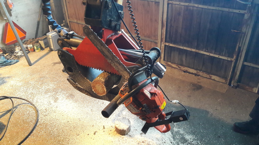 Für mich zum besseren Verständnis, der Linearmotor zieht die Säge in den Stamm? Das eine Ende ist oben mit der Stange angeschweißt und das untere ist mit dem Rohr verbunden das durch die Zangenhälfte geht? Reißts den Motor nicht auseinander wenn man die Zange öffnet?
