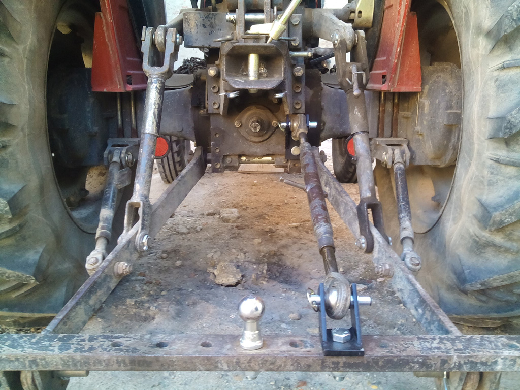 Also ich könnte sie auch unten anbauen aber dann ist die Bodenfreiheit nicht so gut. Beim Hängerbetrieb stört sie so nicht. Das ist auch der Vorteil daran im Gegesatz zu einem Ackerschienendreieck.