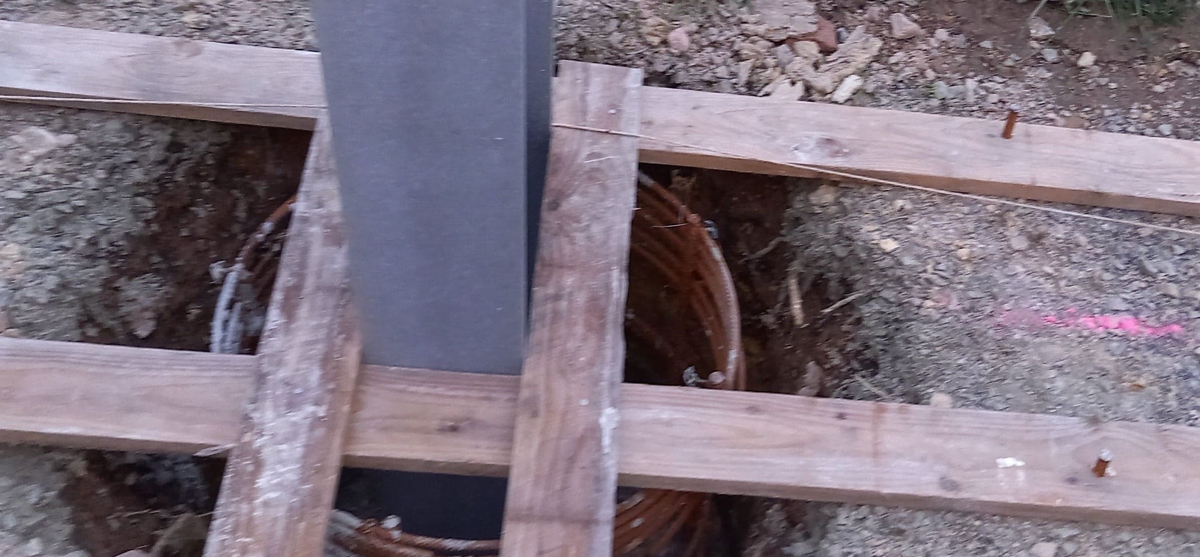 Die Stützen müssen 40cm tief in das Köcher und gucken dann gut 3,7m heraus und sollten natürlich so gerade und genau wie möglich stehen. Die anderen Stützen müssen nicht eingespannt werden und können so auf das Punktfundament mit 30x30cm Fußplatte gedübelt werden.
