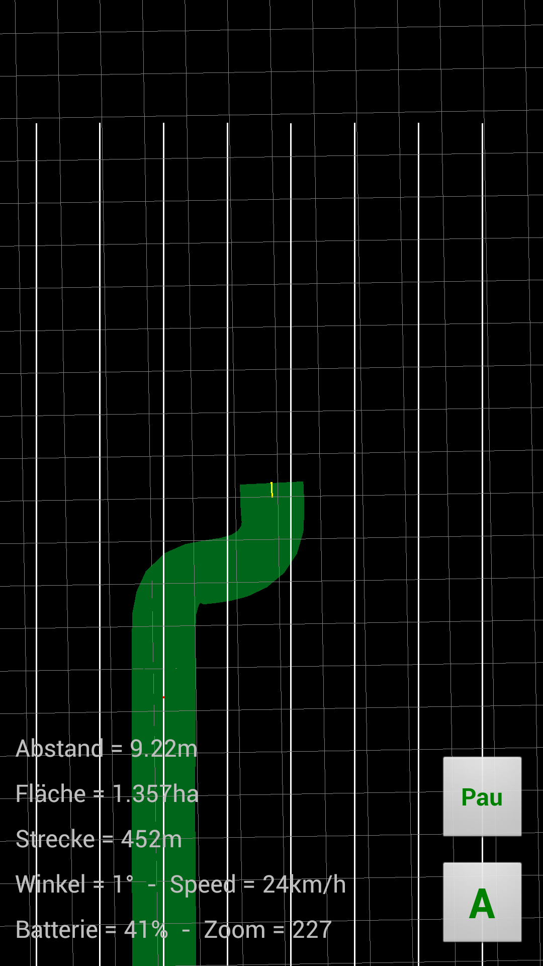 - mit dem Rec-Button kann die bearbeitete Fläche aufgezeichnet werden (ab ca. 1 km/h)