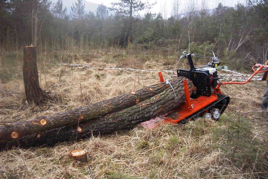 Hier sei z.B. die Handseilwinde genannt, die als Gegenzug der Gewalt der Motorwinde auf die Dauer nicht gewachsen ist. Ich habe mir deshalb angewöhnt, rückwärts so weit an den zu ladenden Stamm heranzufahren, dass eine Sicherung nach vorn nicht mehr nötig ist.