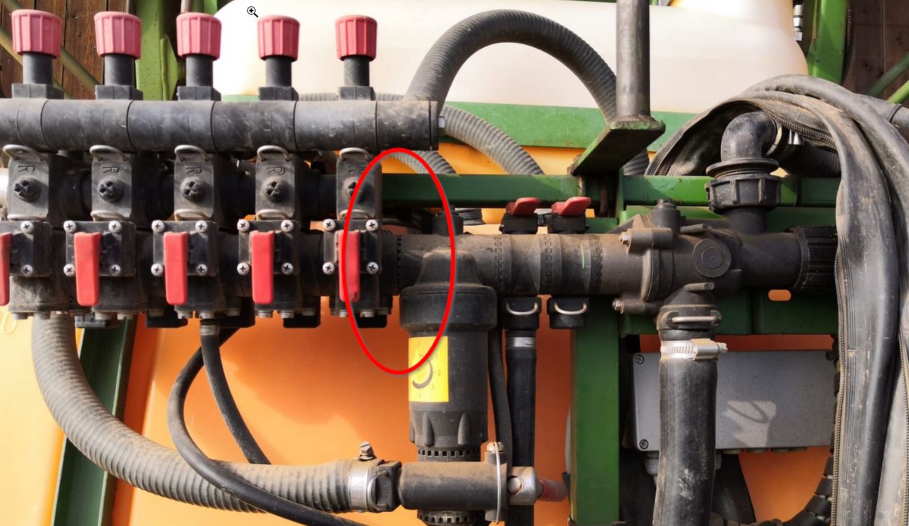 Armatur möglichst weit an die Düsen setzen, die Schläuche zu den Teilbreiten kannst Du knapp 2 Meter kürzen schätze ich, damit hast Du beim Einsatz etwas schneller die aktuelle Brühe an den Düsen.