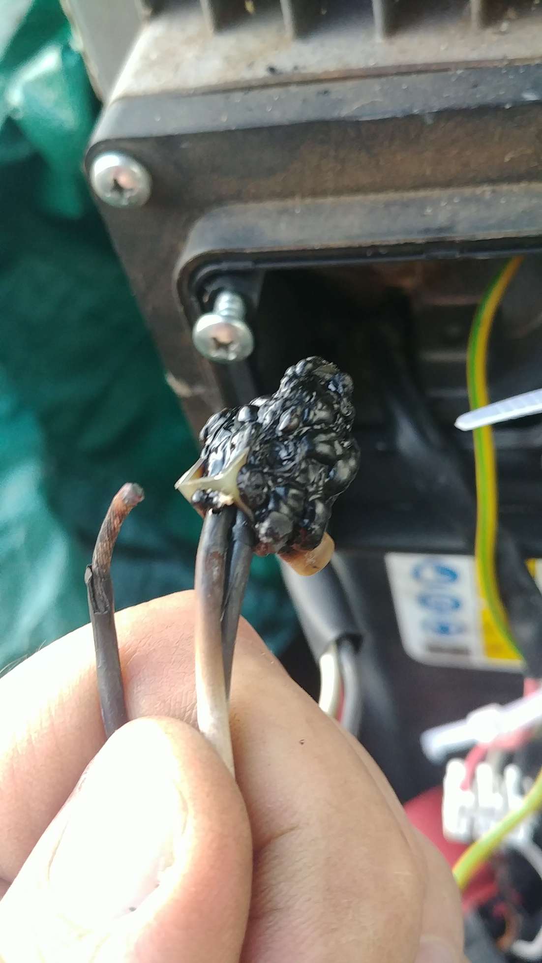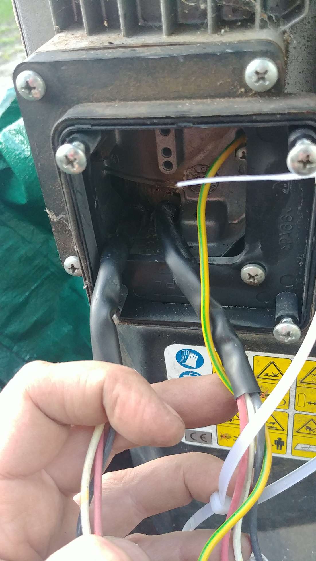 Da ich Strom nicht so mag, Schaltplan besorgt und Elektriker (via whatsapp) kontaktiert. Der rechte Strang kommt vom Schalter, das sieht man auf dem Foto nicht so recht, der Linke kommt aus den Tiefen des Maschinenraums.